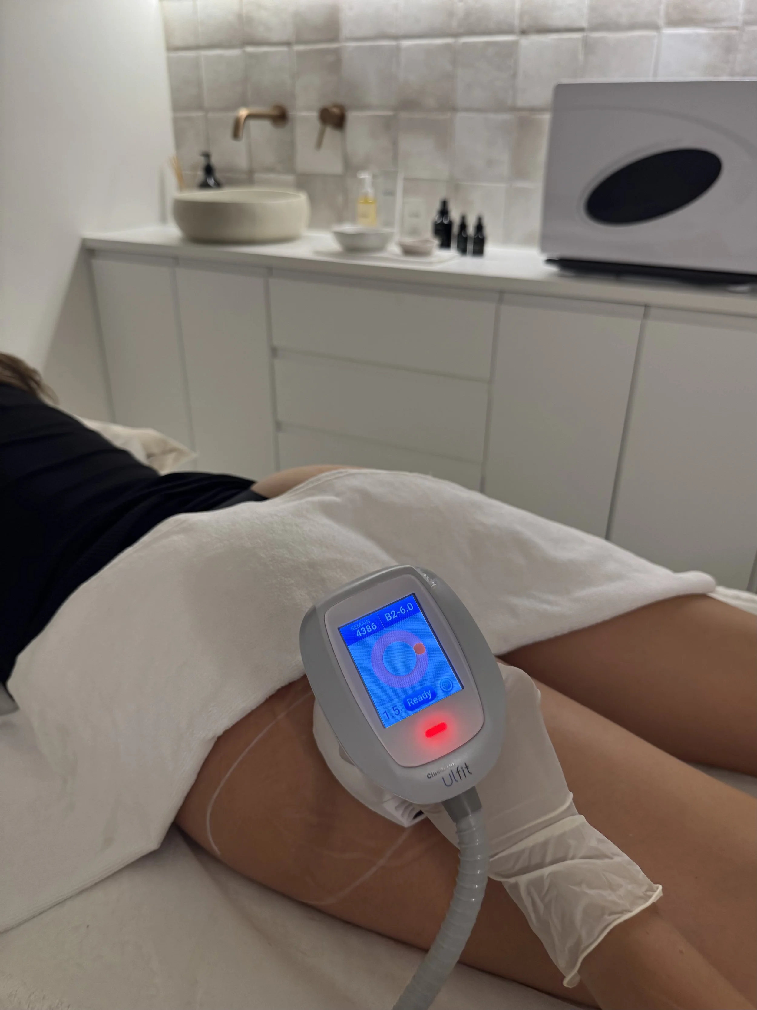 Ulfit Body Contouring is a non-invasive HIFU treatment designed to contour the body by reducing fat and tightening the skin. The treatment combines fat reduction with skin tightening technology to target and eliminate fat cells, while improving skin texture and tone. The process also stimulates natural collagen production, which enhances skin elasticity and continues to improve over time.